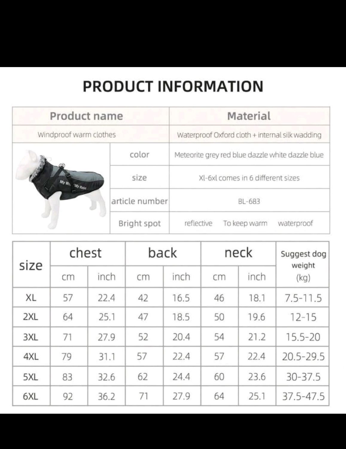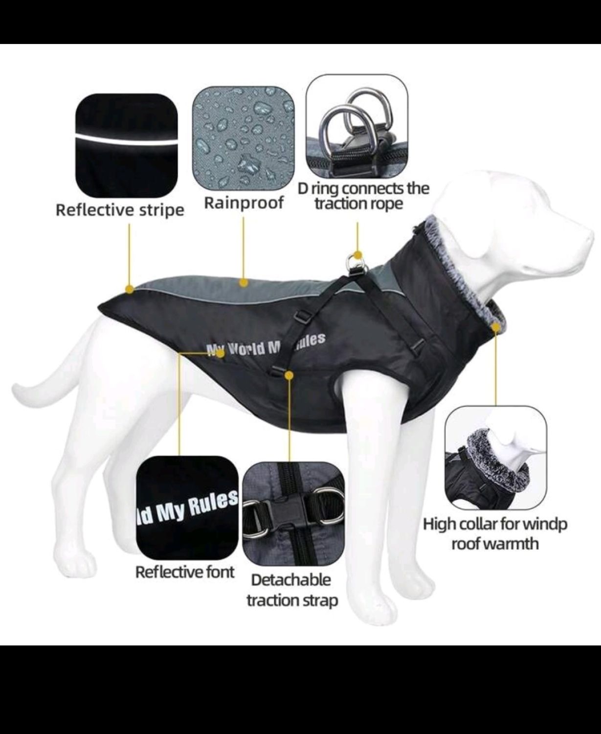 Качествено водоустойчиво зимно яке за вашето куче. Дрехата е снабдена и със светлоотразителна лента, подходяща за разходките по тъмно. Каишката, пришита към него, е здрава и надеждна, осигуряваща спокойни моменти с вашият любимец.